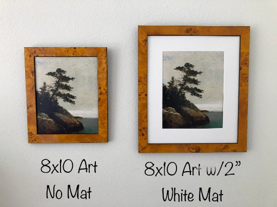 Mat and frame size should be a minimum of 2" larger than your artwork.