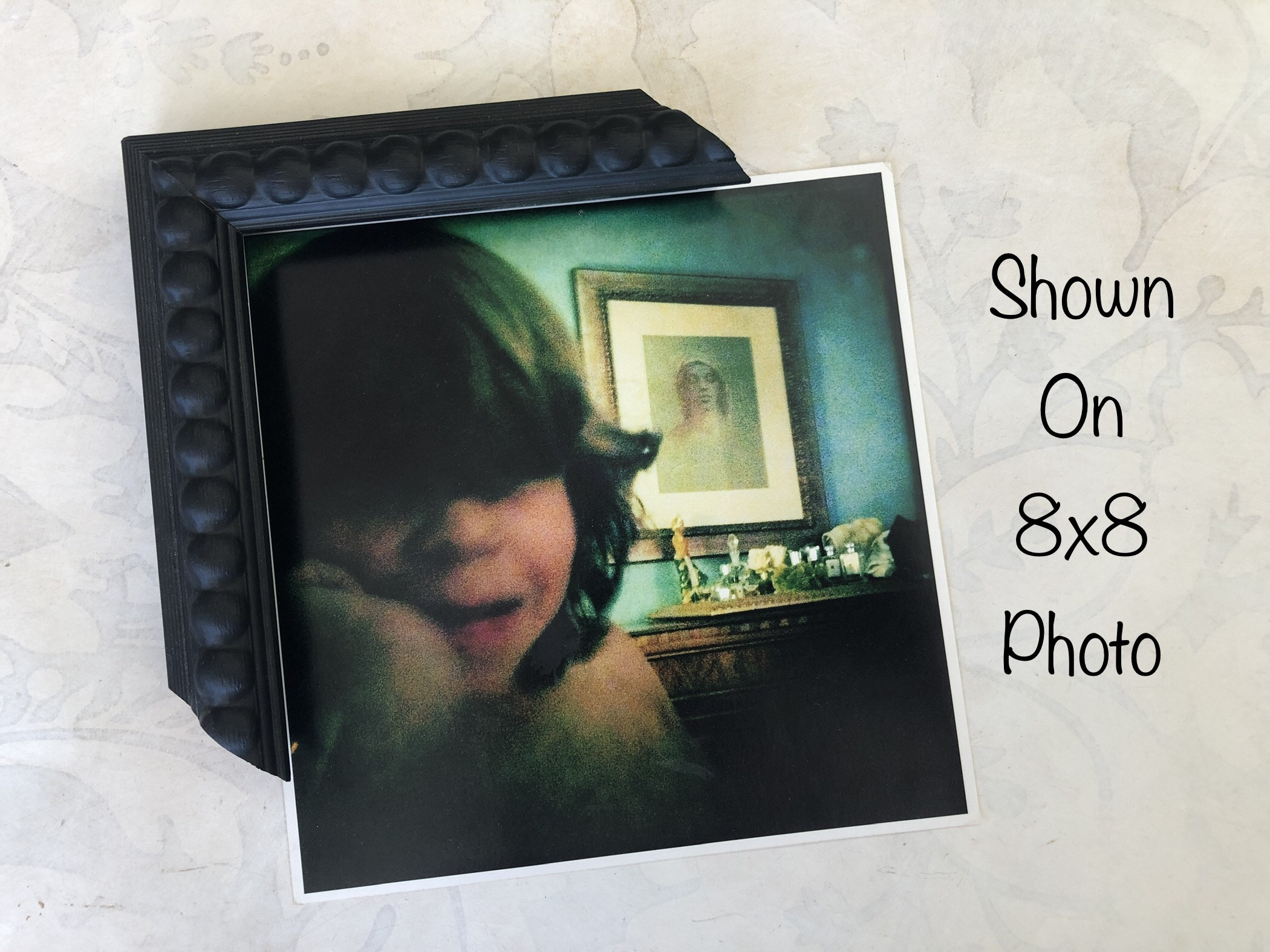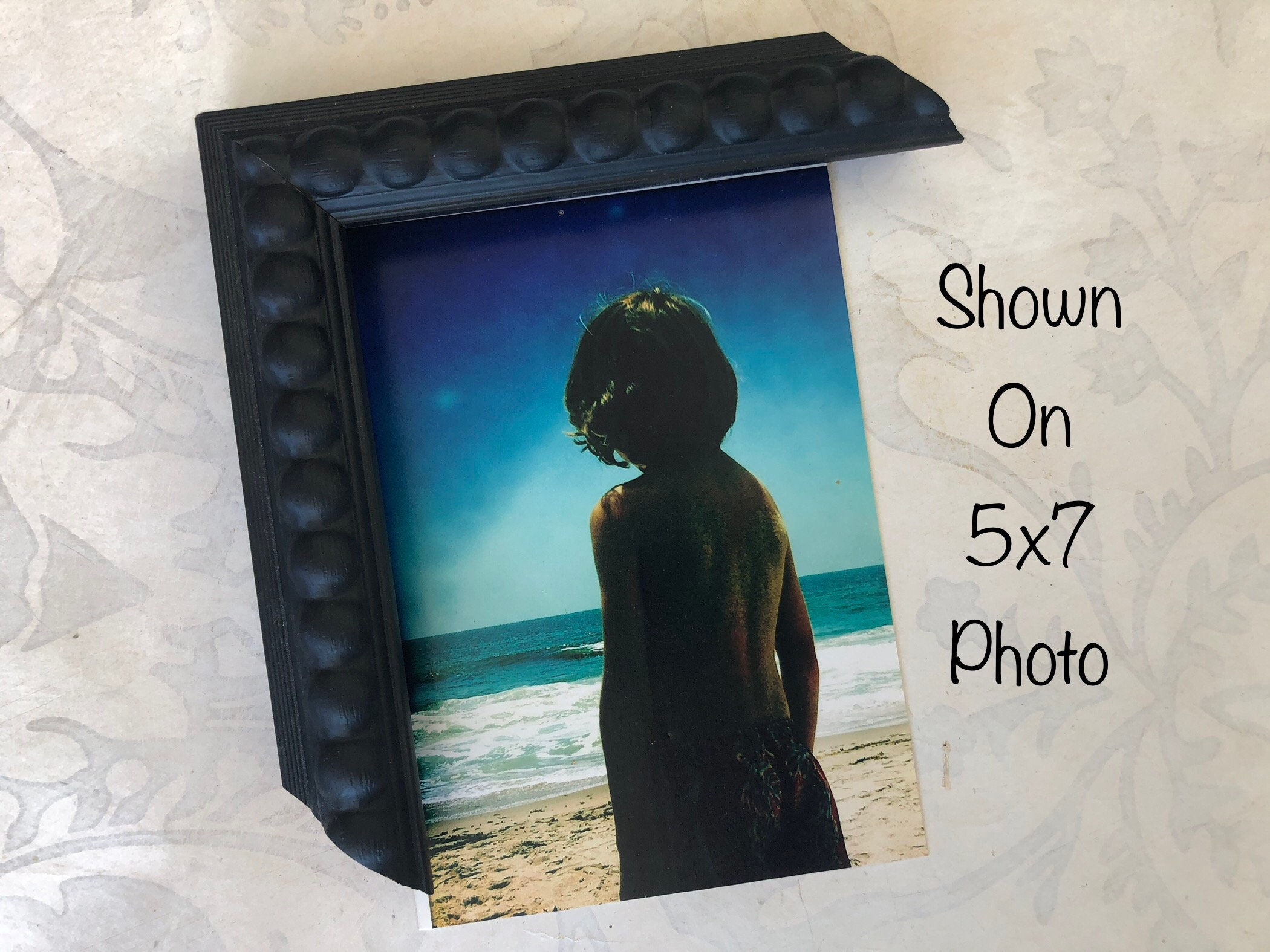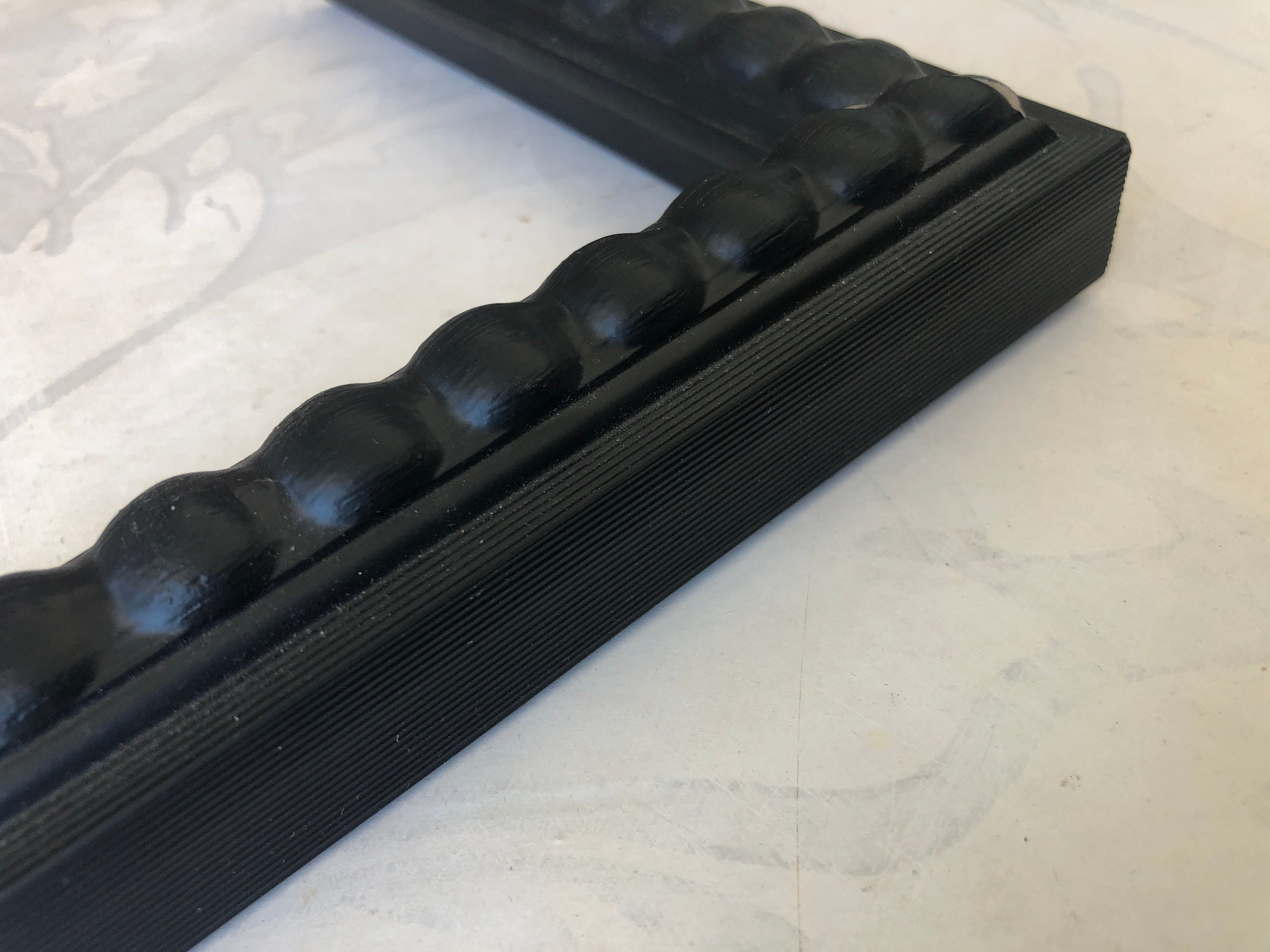 This Italian black picture frame with a light wood grain. Perfect on photos, drawings, small paintings. This would make a great mirror frame!!