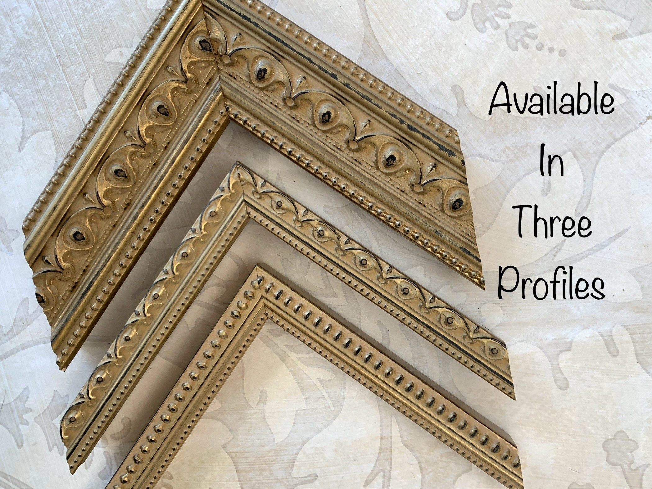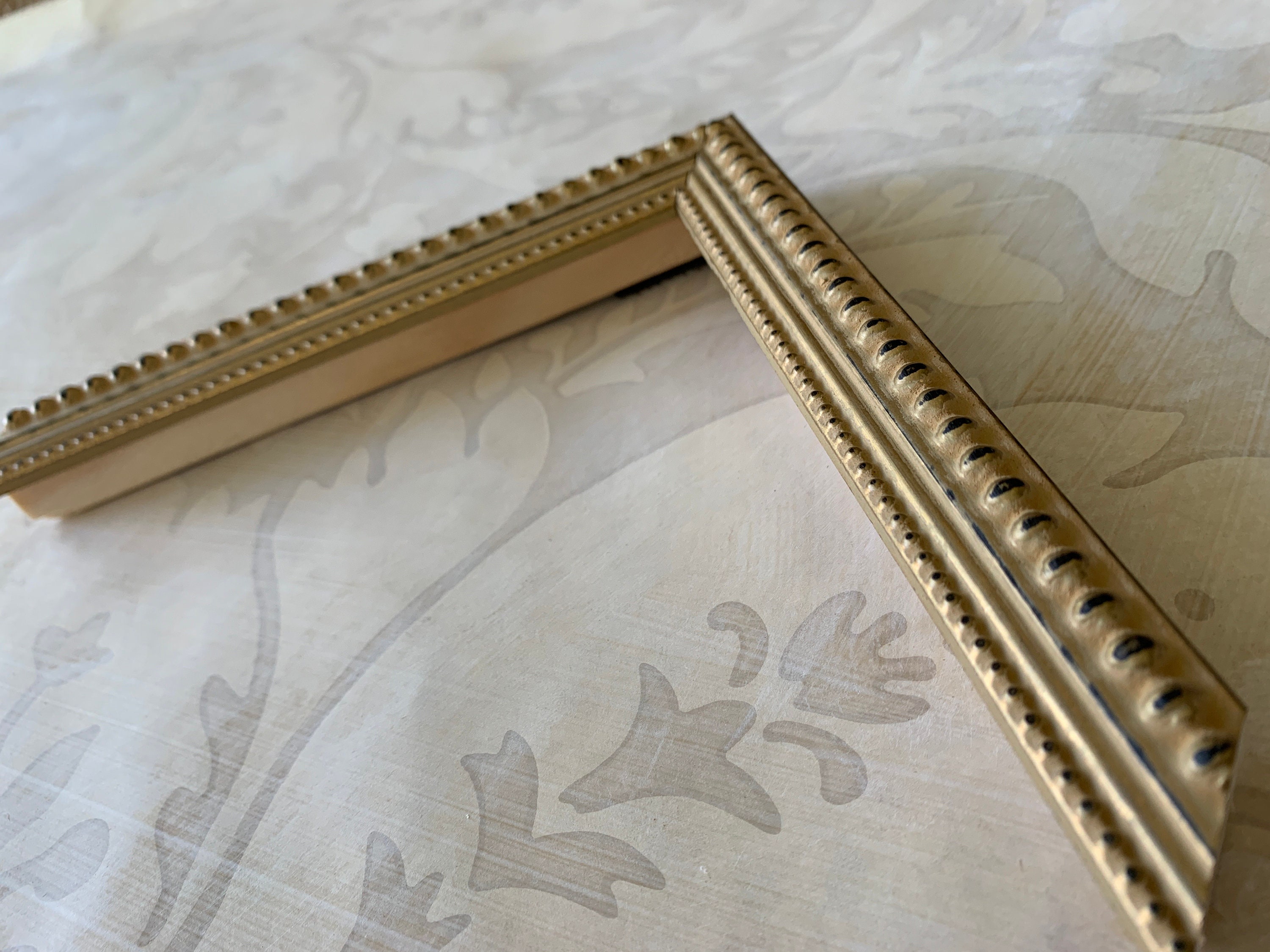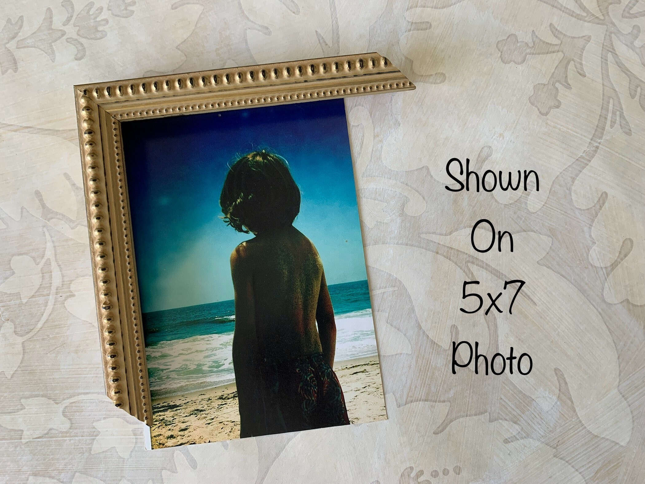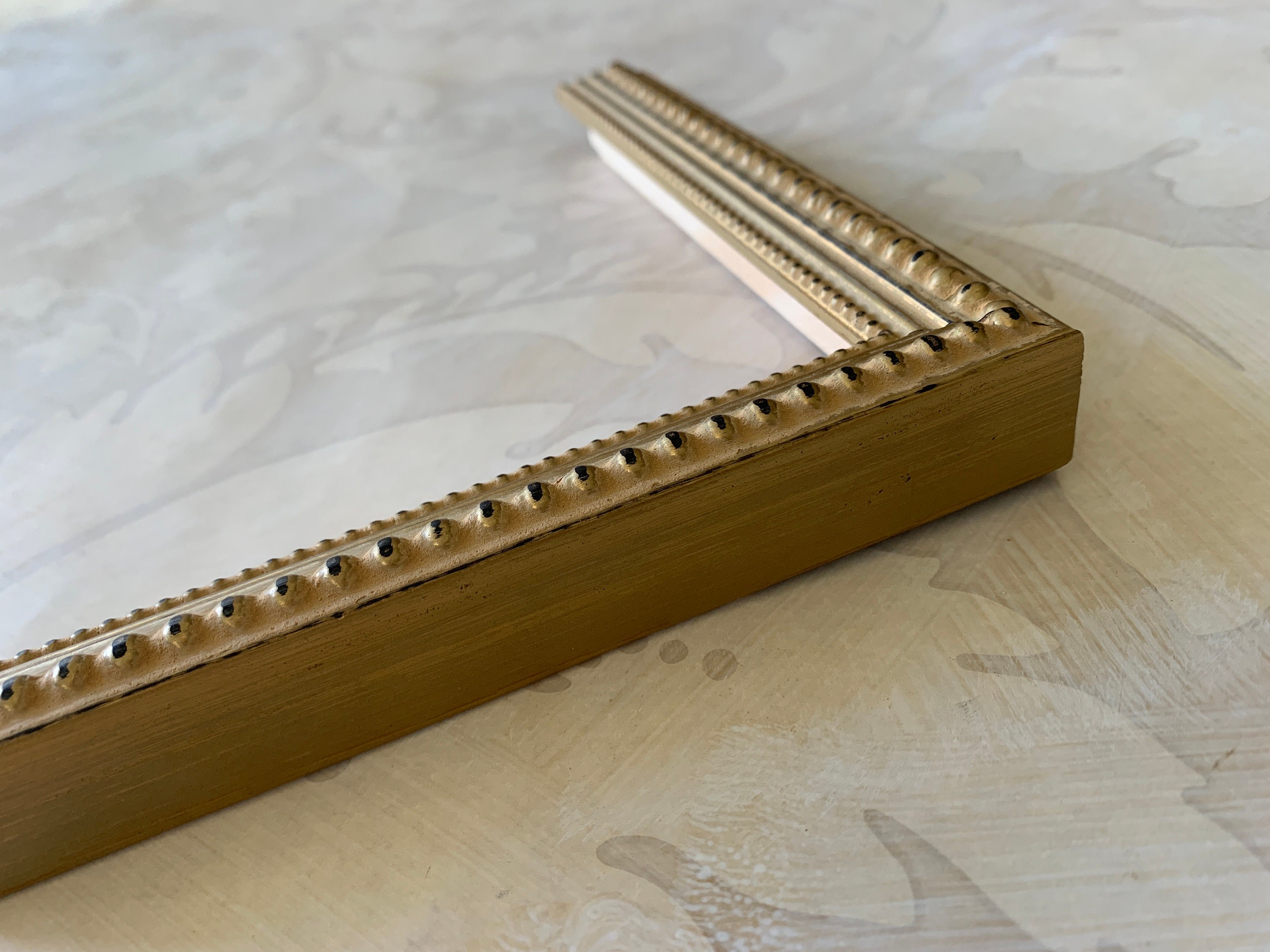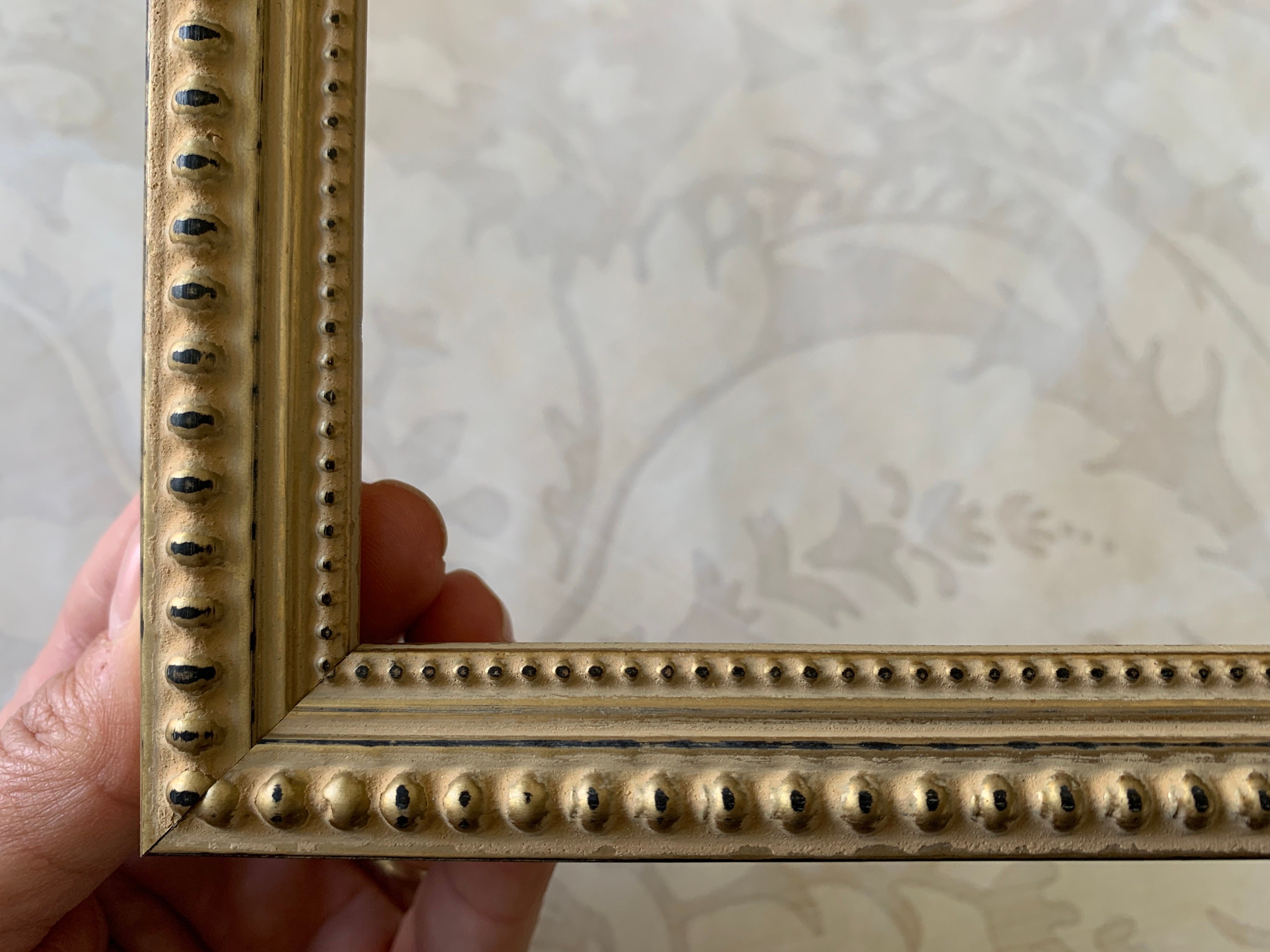This vintage design picture frame has a soft matte gold finish and a double beaded detail
