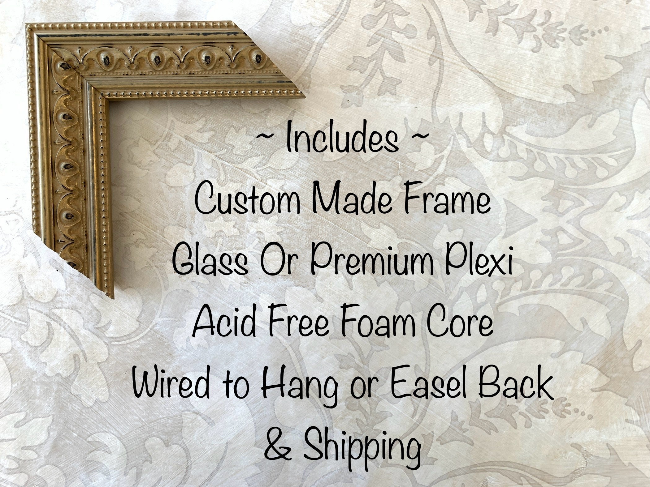 Be sure to let us know if we're framing a painting on stretcher bars or a canvas board and we'll include the appropriate clips to hold your artwork into the frame and will not include glass unless you request it.