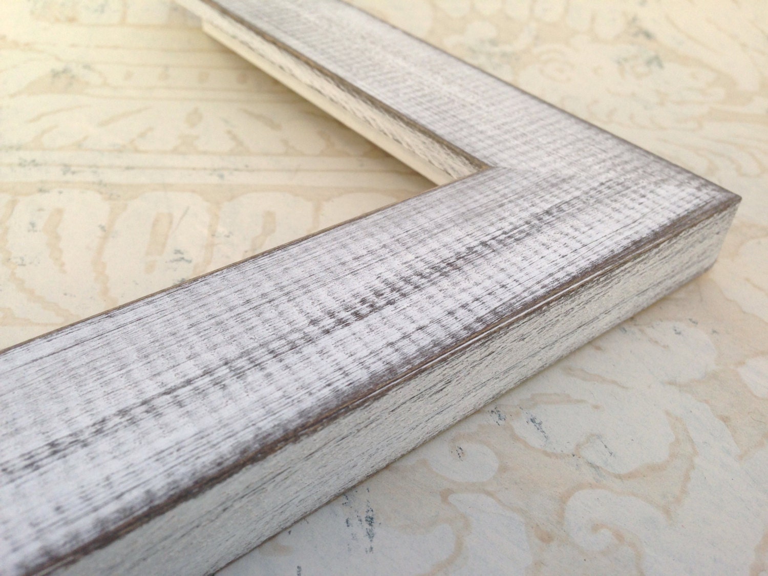 This solid wood frame has been given a distressed flat white washed finish.