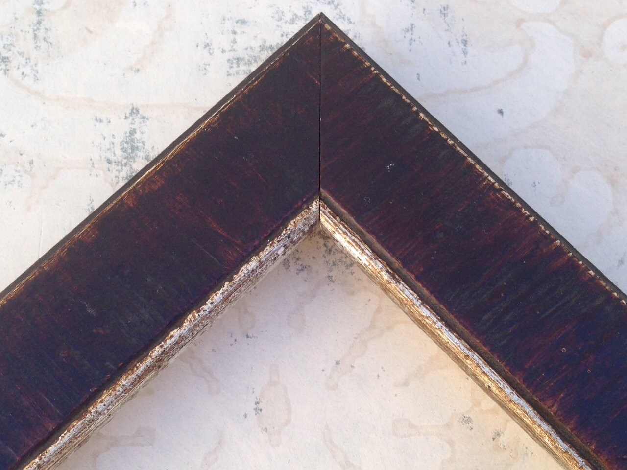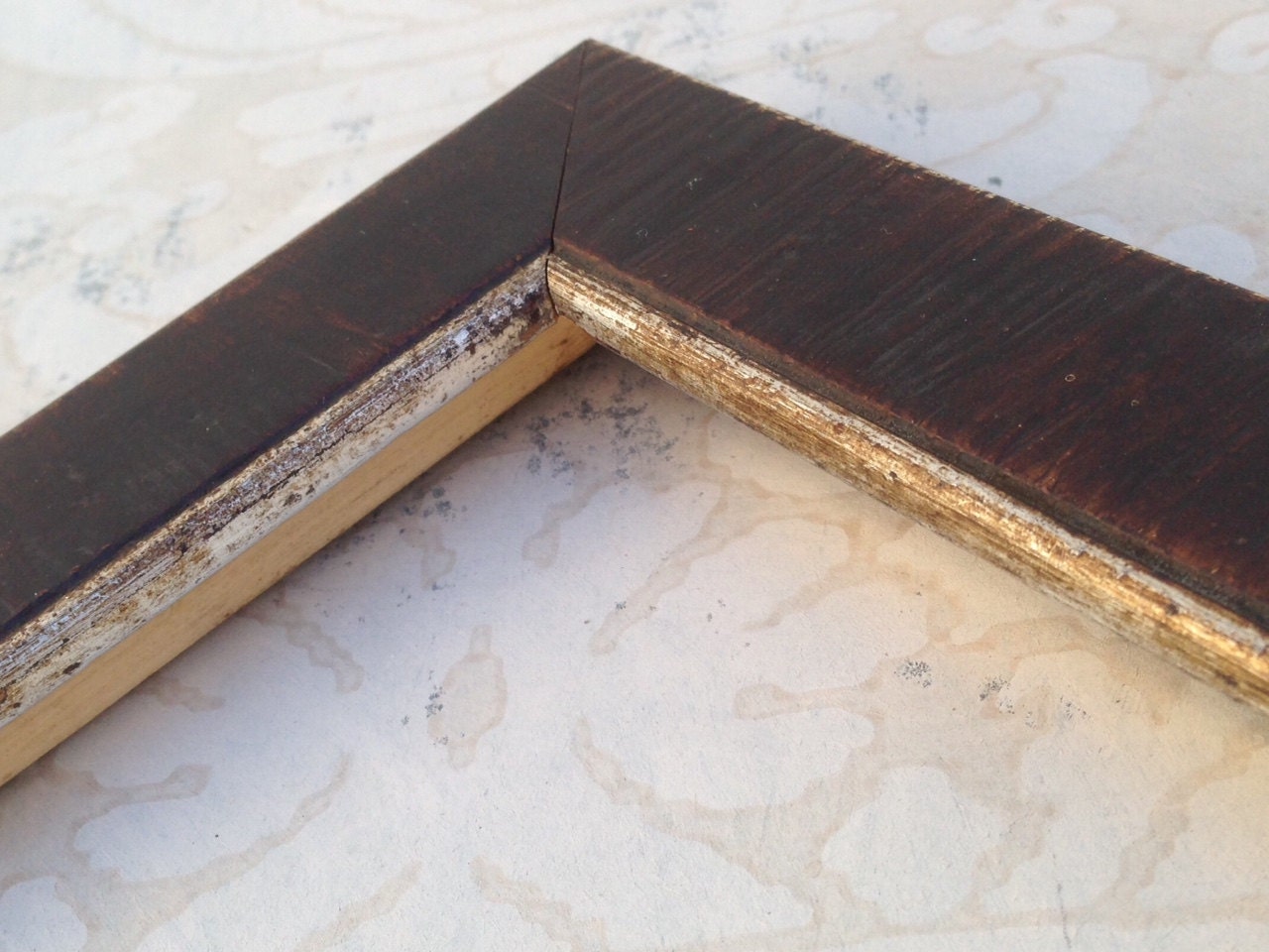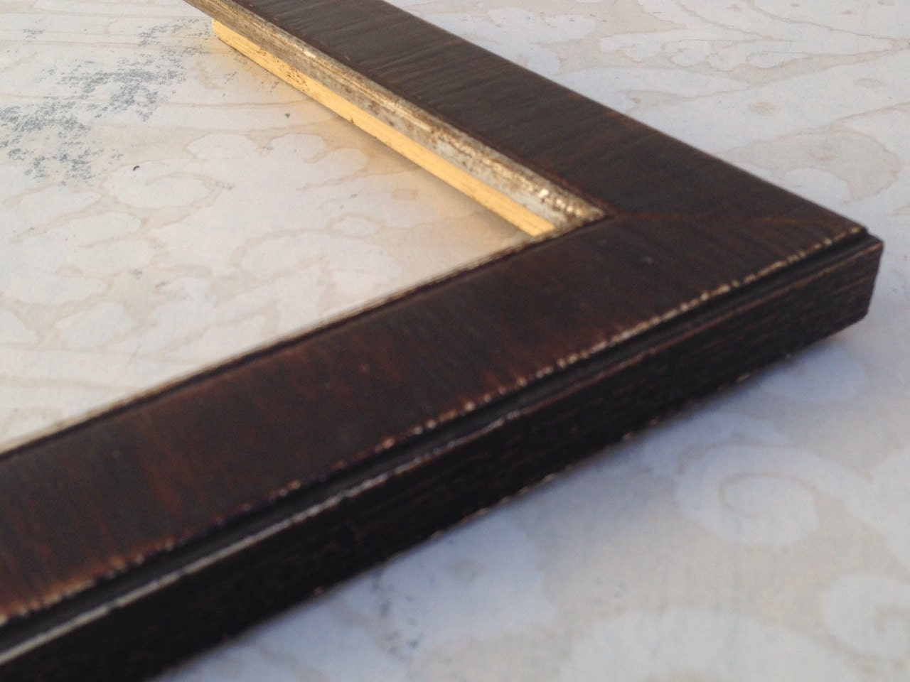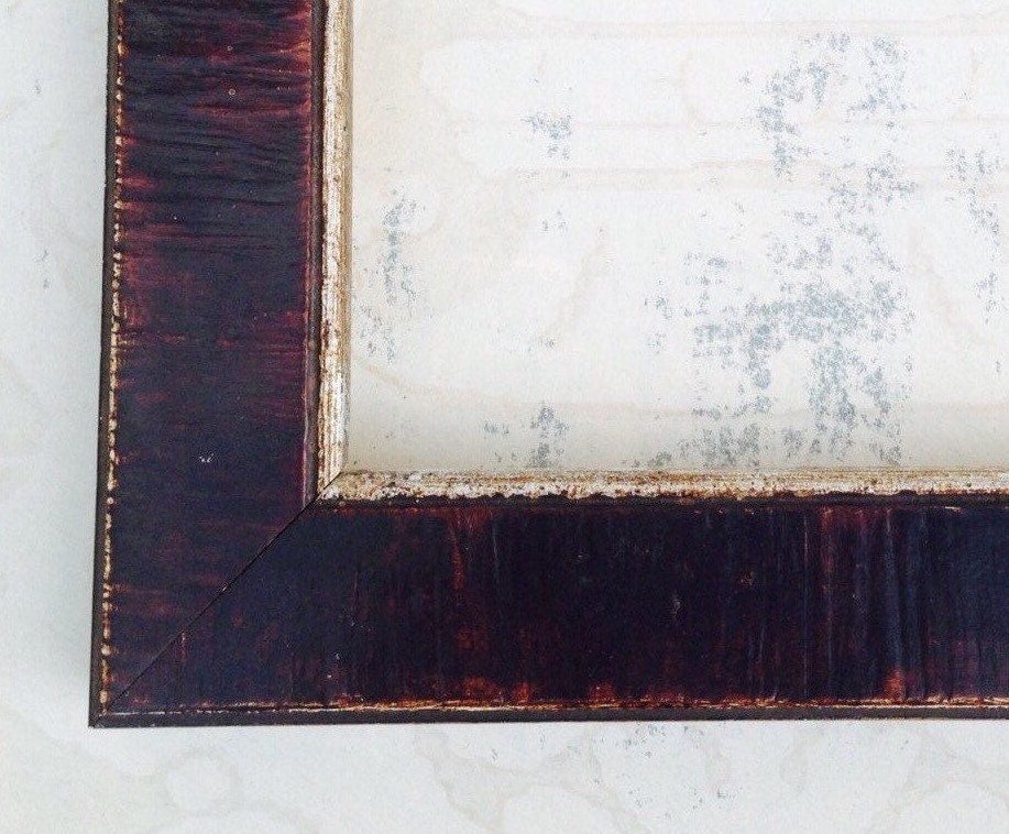 This gorgeous frame has mahogany stained veneer with an equally as beautiful distressed silver inner fillet.