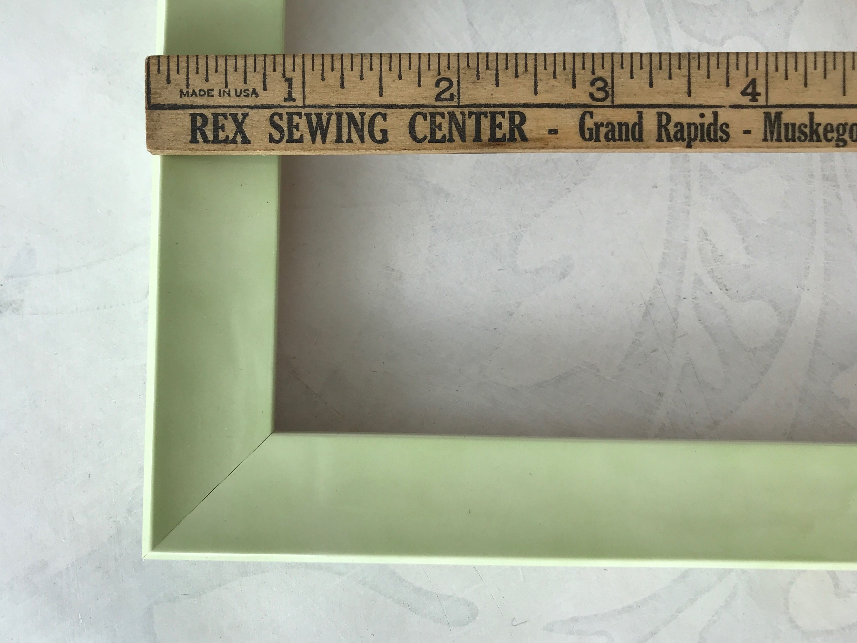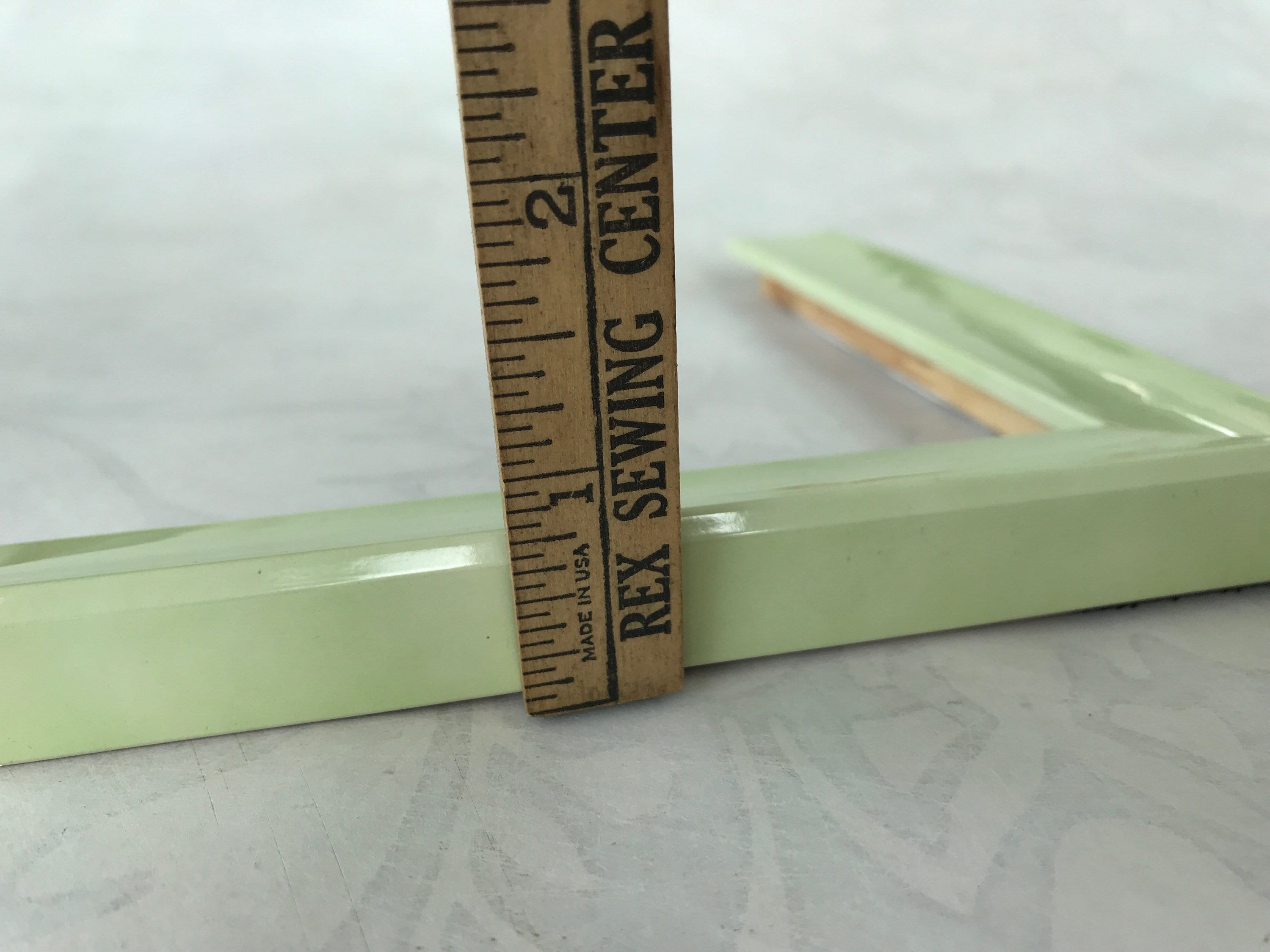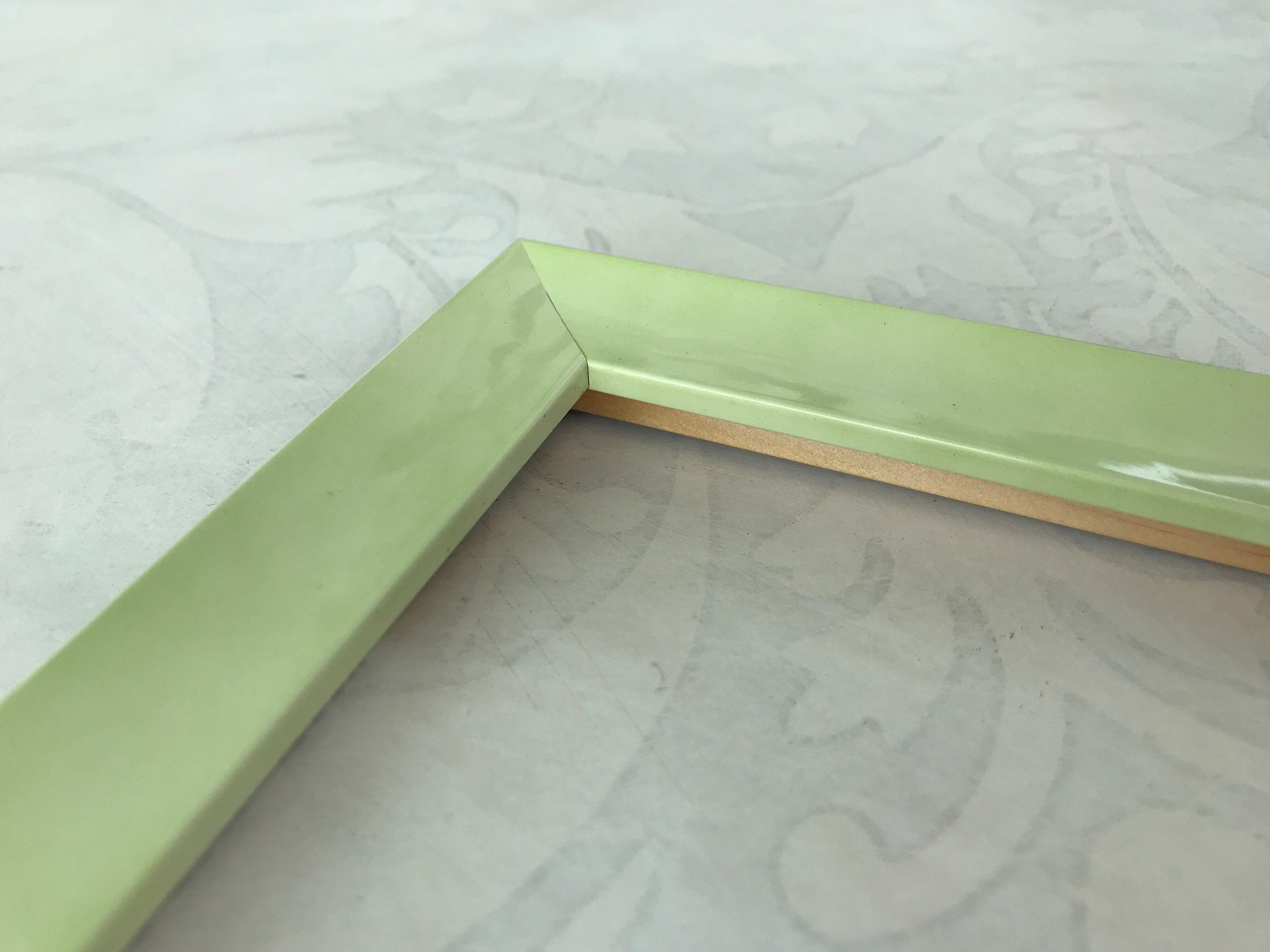 The frame is constructed of solid hard wood with a highly lacquered mint green finish. The profile shape is an inward scoop drawing your eye to the image.