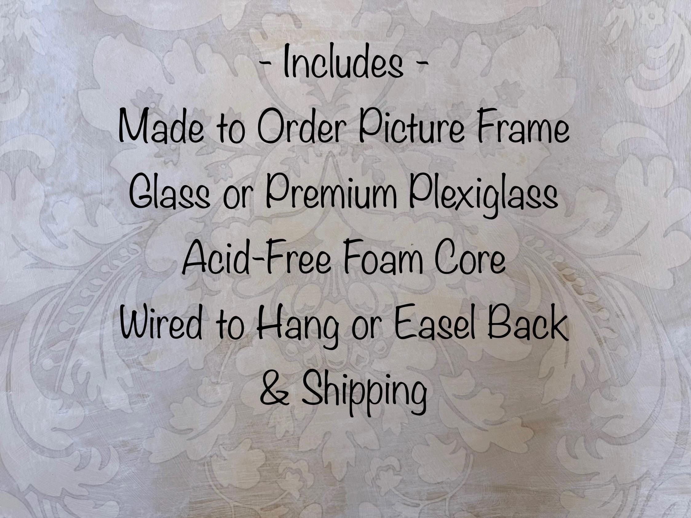 Be sure to let us know if we're framing a painting on stretcher bars or a canvas board and we'll include the appropriate clips to hold your artwork into the frame and will not include glass unless you request it.