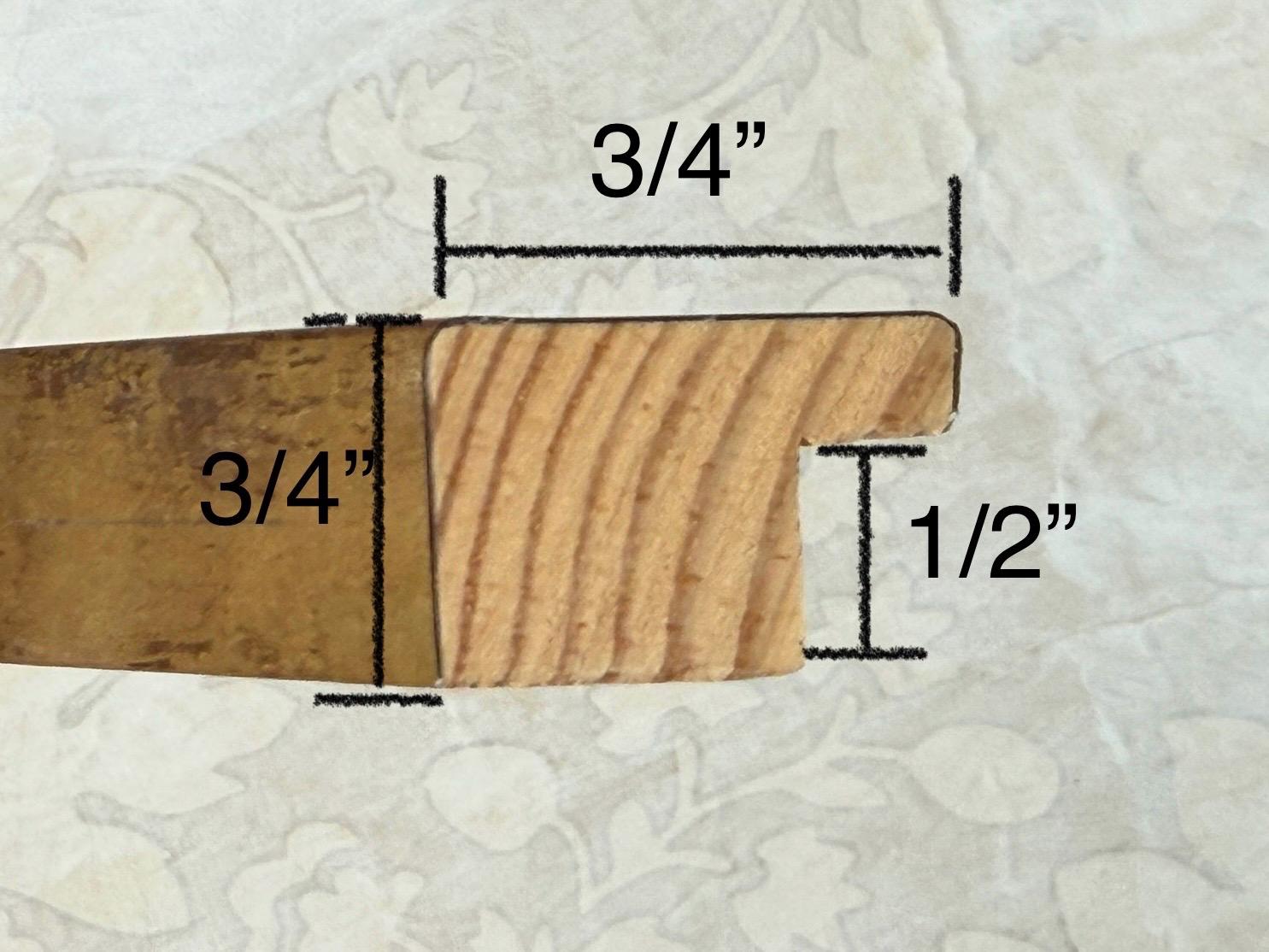 The faces measure 3/4", the outside depth measures 3/4". The lip measures 1/4" and the inside (rabbet) depth is 3/8"