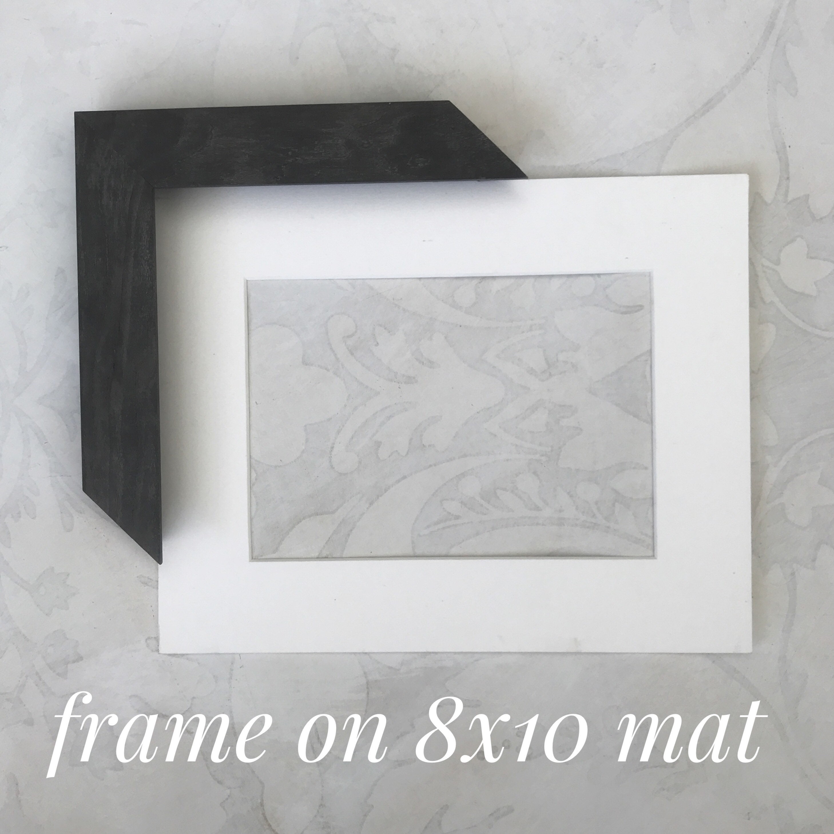 Order the frame that matches the size of your artwork. If you have an 8"x10" picture order an 8"x10" frame. The lip of the frame covers approx. 1/4" of the image all the way around. Visible window will be .5" smaller