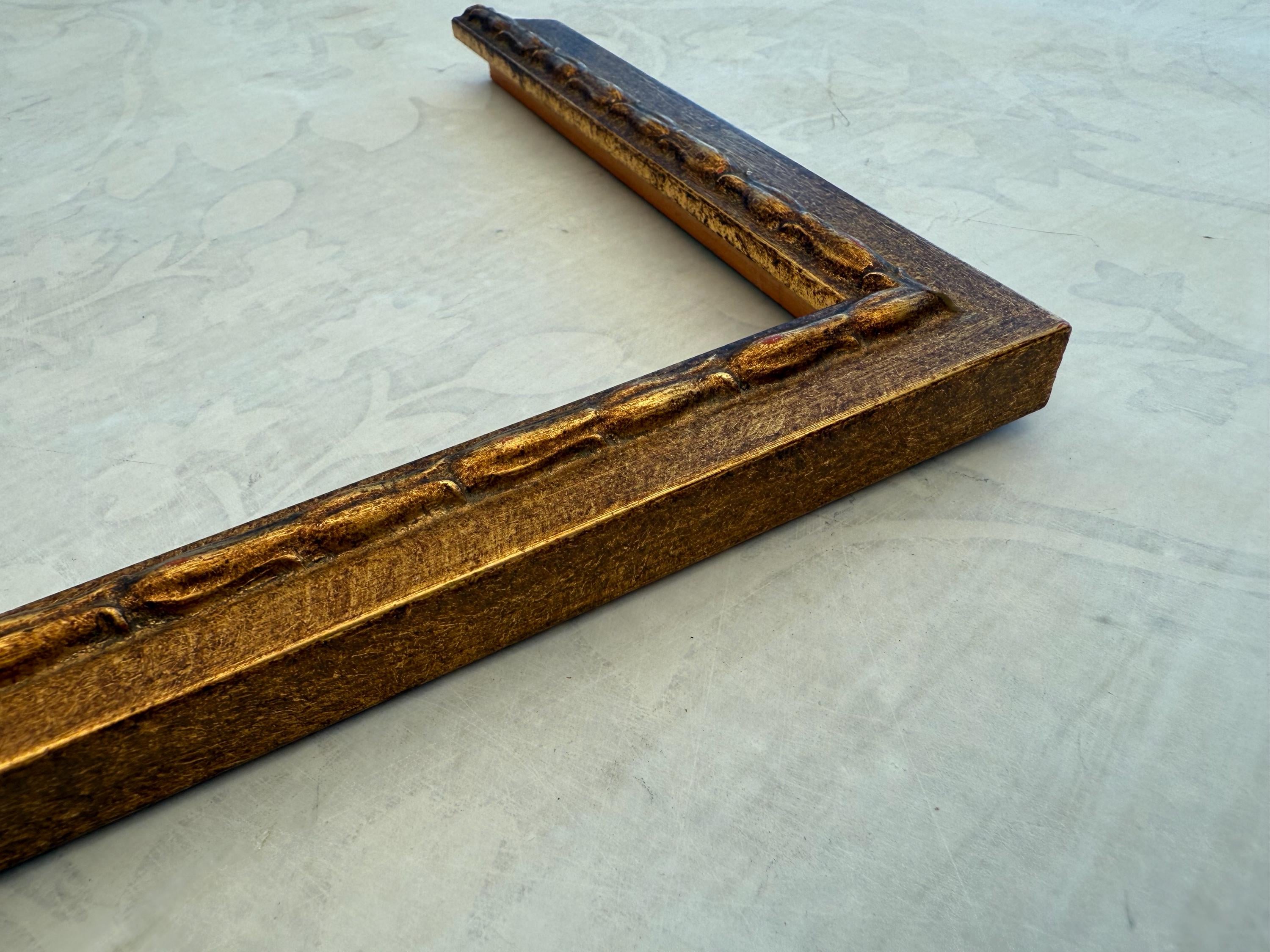 Antiqued Gold Finish with Tulip Flower Detail. Hand made in Italy. Due to the fine hand finished quality, frame finishes may slightly vary.