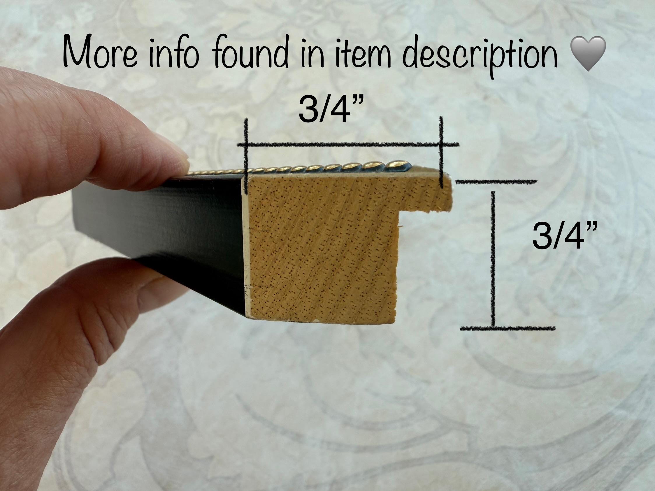 The frame measures 3/4" on the face, 3/4" on the outside edge and 5/8”" deep inside, 1/4" lip.